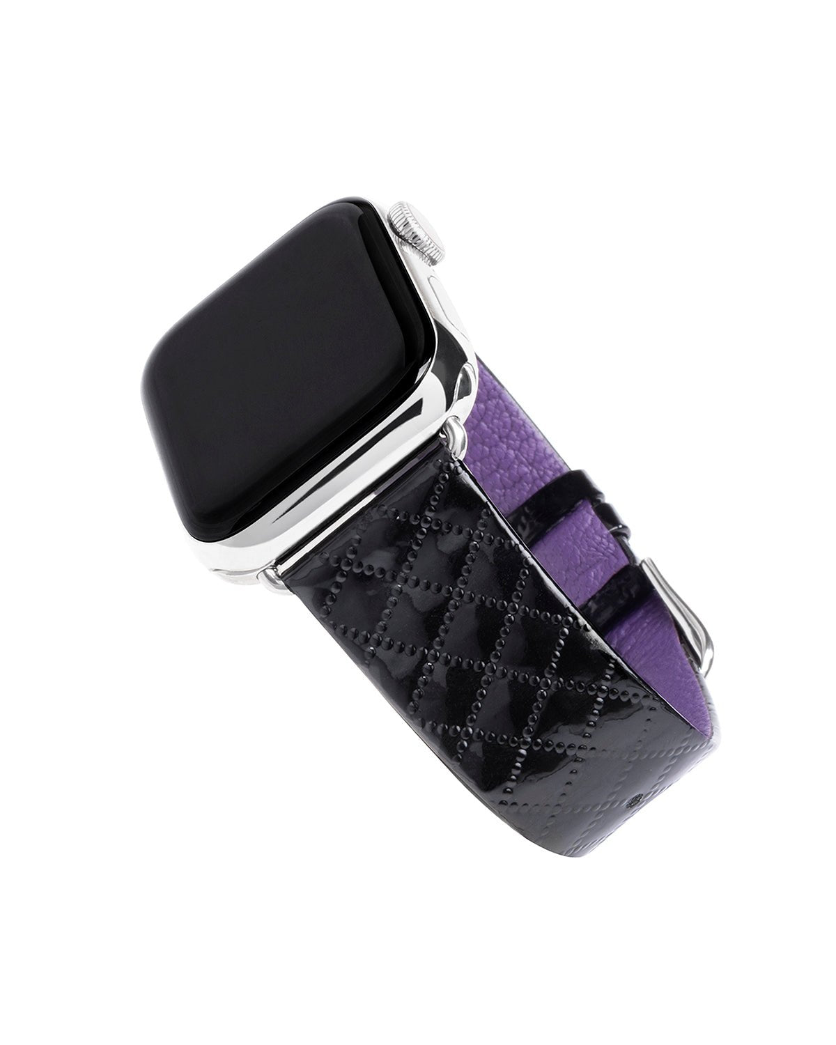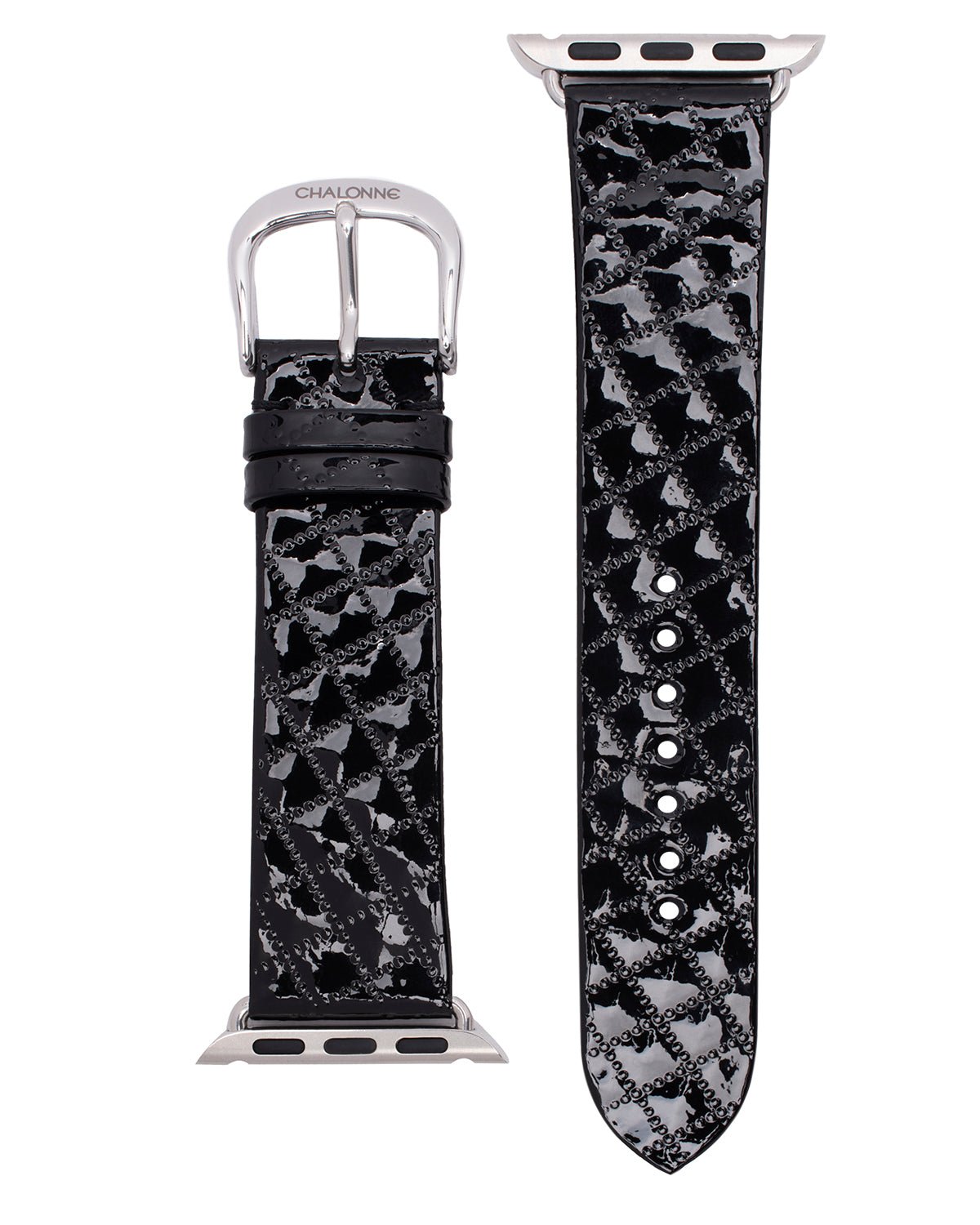 Amp up your look with more chances to shine, day or night, with this elegant band. Premium high-gloss, black patent leather is stamped with a flat diamond pattern to reflect light and add dimension.