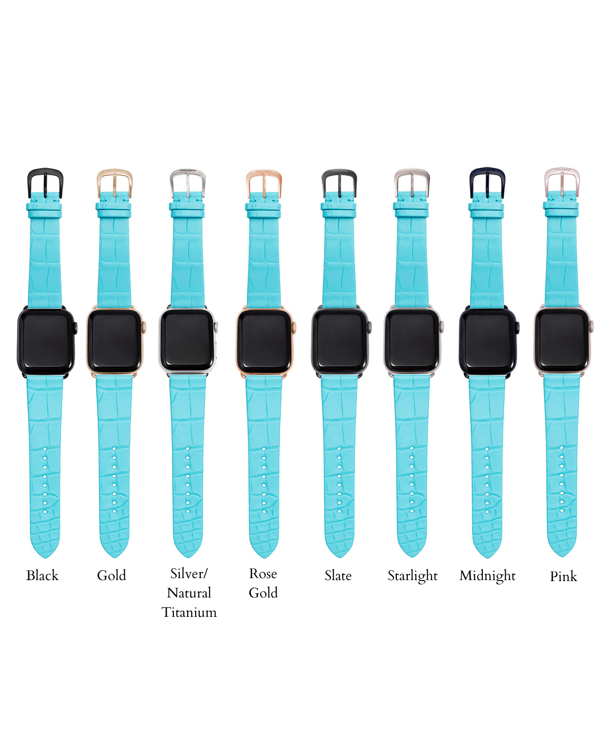 The Orleans in Aqua is a refreshing splash of color with its crisp, poolside matte finish. Breezy and vibrant, it adds a playful twist to any outfit. Fine royal purple goatskin lines the band for all-day soft and supple comfort. Our bands are intentionally designed with a thin, feminine profile and minimal padding, making them lightweight and incredibly comfortable.
