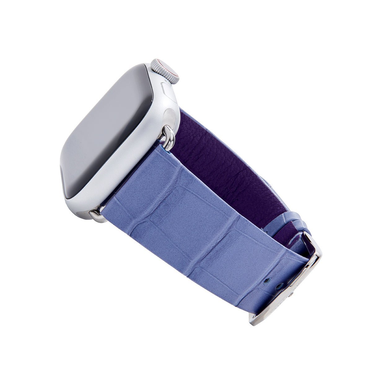 The Orleans in Periwinkle complements any look with its periwinkle blue matte finish on genuine alligator. Fine royal purple goatskin lines the band creating soft and supple comfort. Our bands are intentionally designed with a thin, feminine profile with minimal padding so they are lightweight and incredibly comfortable.