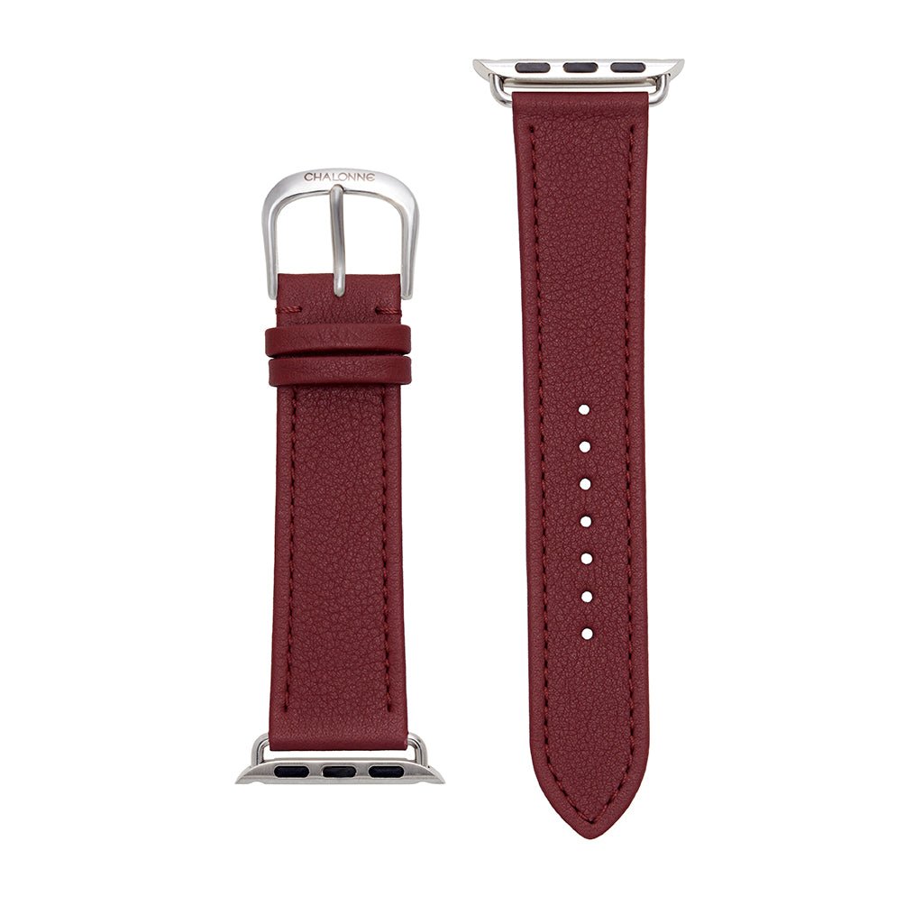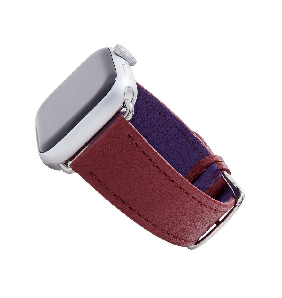 The Sorrento in Rouge is a lovely, brownish-red calfskin leather with coordinating stitching. Each band is handcrafted in France in small batches with meticulous attention to detail, using only the finest quality leather.