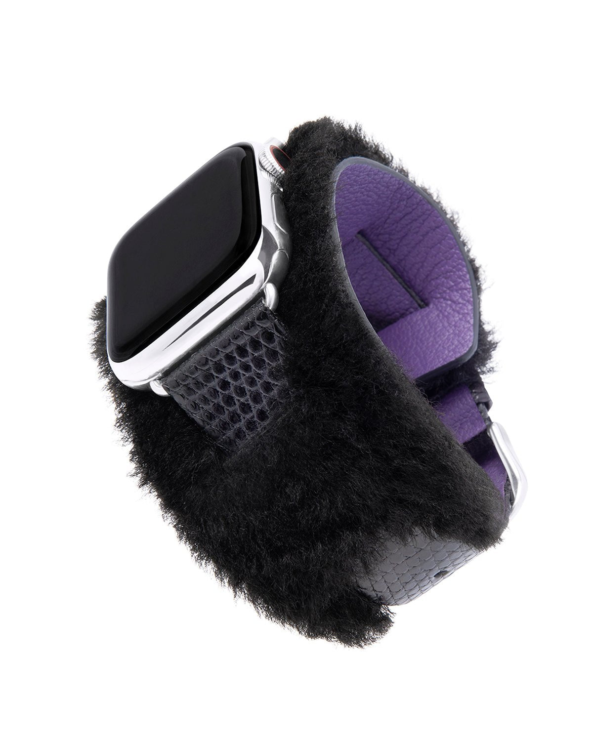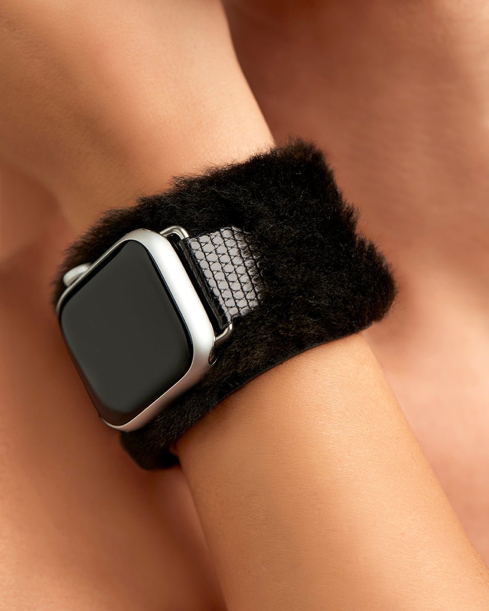 Apps that require the Apple Watch to be touching skin, like the heart monitor, may not work properly with this band. Shearling is a natural material that may shed.