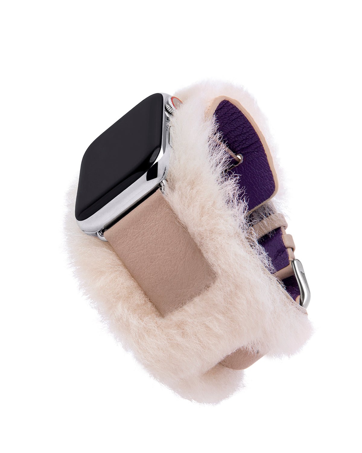 Apps that require the Apple Watch to be touching skin, like the heart monitor, may not work properly with this band. Shearling is a natural material that may shed.