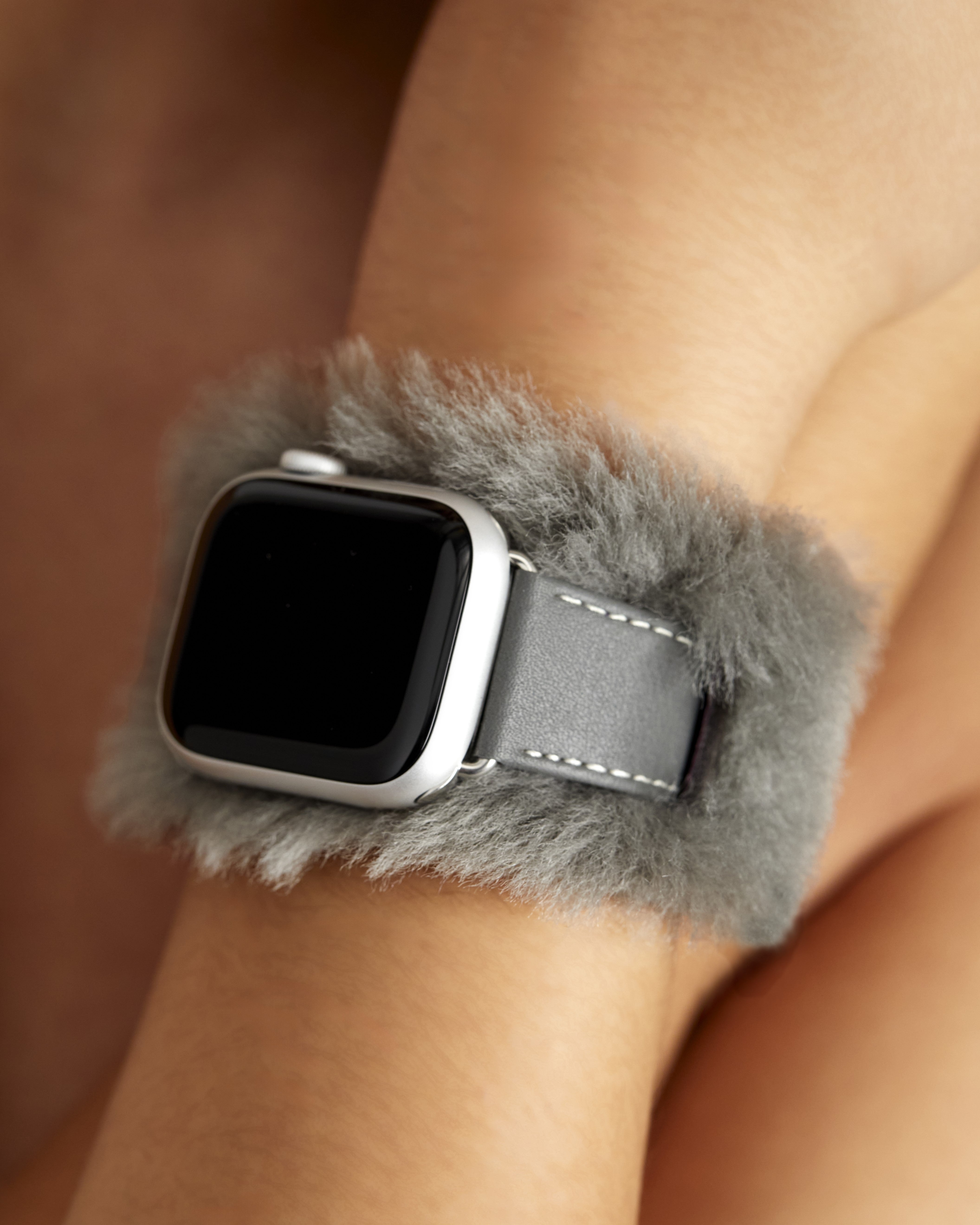 Apps that require the Apple Watch to be touching skin, like the heart monitor, may not work properly with this band. Shearling is a natural material that may shed.