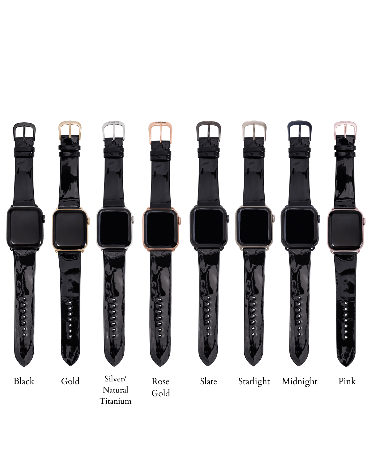Sleek patent leather adds a touch of boldness to your Apple Watch. Each band is hand-crafted in France in small batches with meticulous attention to detail, using only the finest quality leather.