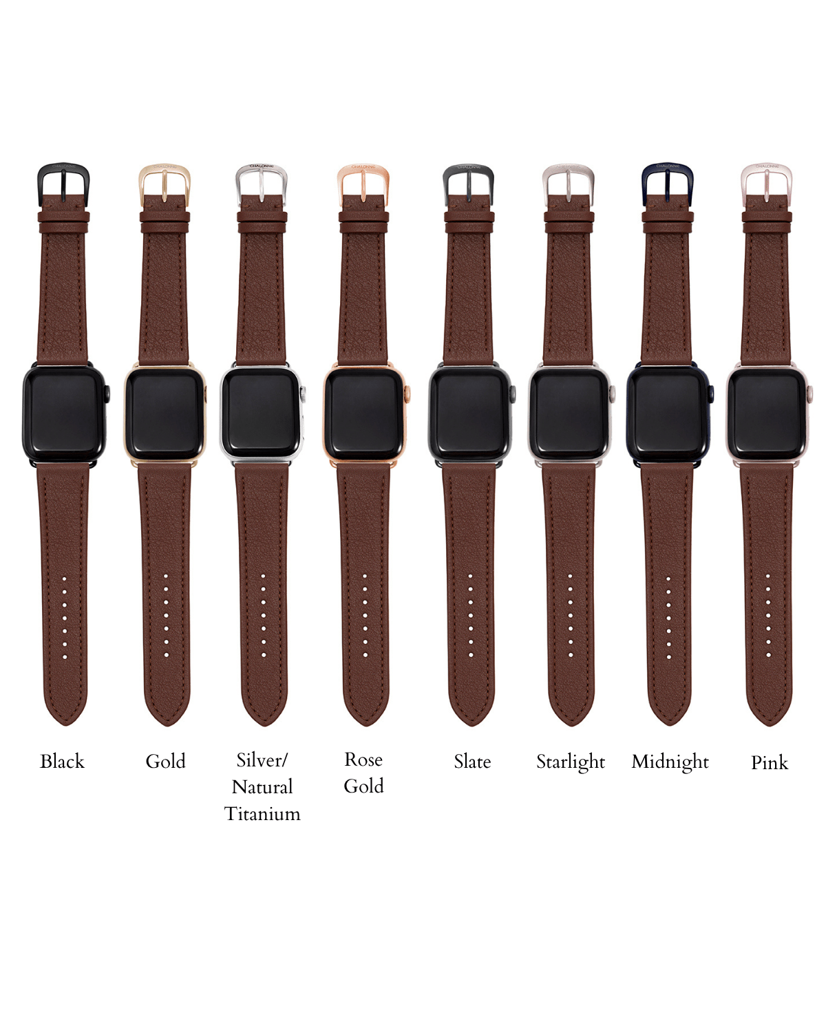 The Sorrento in Chocolate is the perfect dark brown calfskin leather with coordinating stitching. Each band is handcrafted in France in small batches, using only the finest quality leather.